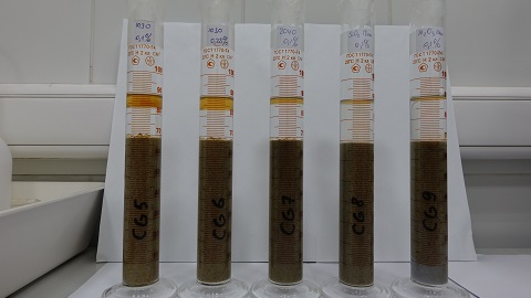 «Компания „РусСилика“ предоставила нам образцы силиказоля для исследования. Мы насыщали керны нефтью, помещали одни образцы в водную среду, а другие — в силиказоль с различной концентрации наночастиц. В итоге было невооружённым глазом видно, сколько нефти вытесняется из породы при помощи этой суспензии, поскольку силиказоль и нефть не смешиваются — их граница очень чёткая», — продолжил Максим Пряжников.
